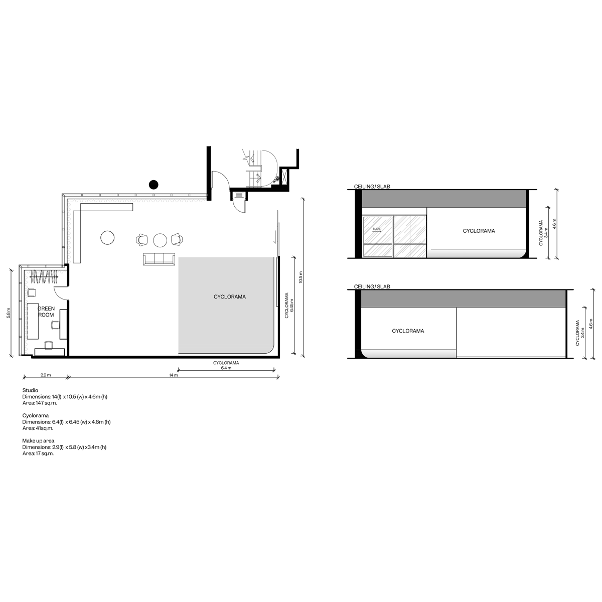 Studio 1 is a multi-functional space designed for a range of creative needs. It features a large corner cyclorama (41m²) ideal for photo shoots, a large-format printing station, and a product wall showcasing Canon cameras and lenses. With its generous size, the studio lends itself well to hosting events, workshops, and product demonstrations.