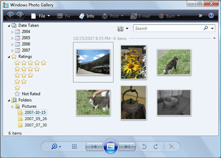 9. When the computer finishes importing images, [Windows Photo Gallery] starts, and the following screen appears.