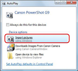 3. The following screen will appear, so click [Import pictures-using Windows].