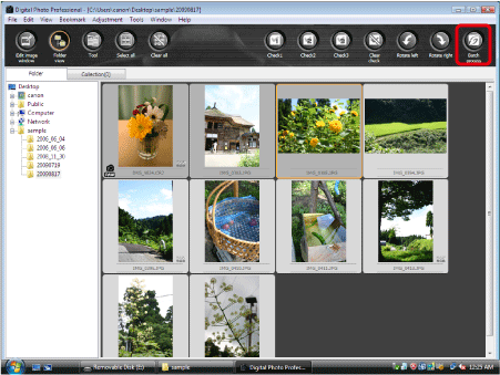 2. Click [Batch process] on the tool bar, or select [Batch process] from the [File] menu.