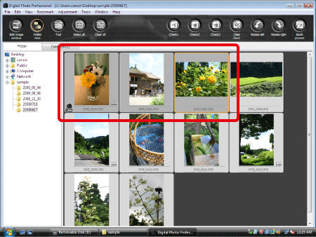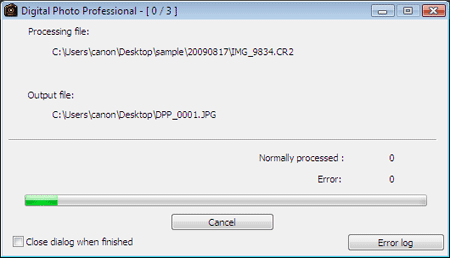 | Batch process | Convert in batches adjusted multiple RAW images to JPEG or TIFF images and save. The original RAW images remain unaffected. |