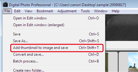 2. Select [Add thumbnail to image and save] from the [File] menu.