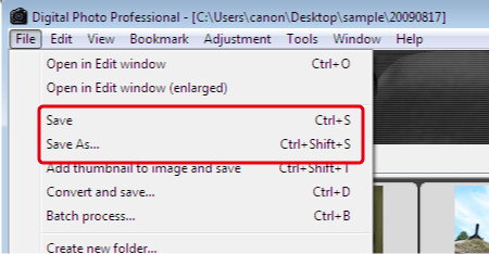 With Digital Photo Professional, you can perform the following types of saving according to your requirements.
