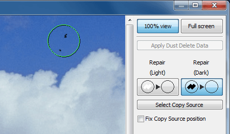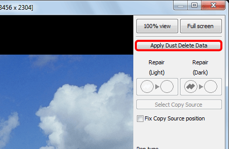 3. The copy stamp window appears. When the image has redrawn itself, click the [Apply Dust Delete Data].