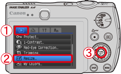 When the image you want to resize appears, press the ⋖FUNC./SET⋗ () button.