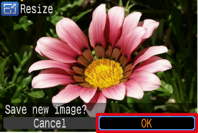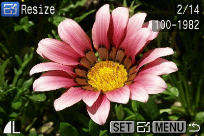 9. Press the ⋖MENU⋗ () button to check the resized image.