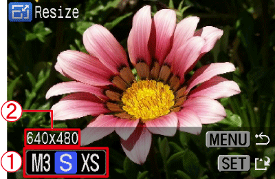 After you select the resolution you want to resize, press the ⋖FUNC./SET⋗ () button.