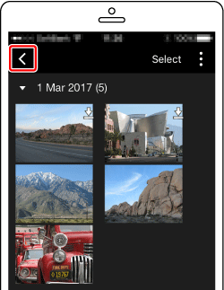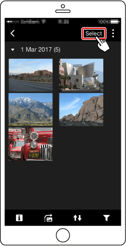 When the camera and smartphone are connected, a list of images in the camera appears in "Camera Connect". Tap [Select] appearing in the upper right of the screen.