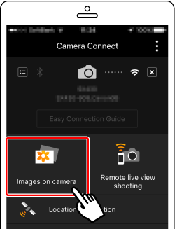 1. Touch [Images on camera] in Camera Connect.