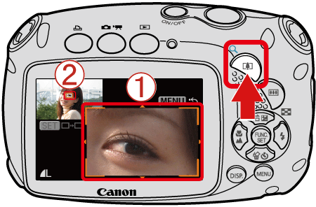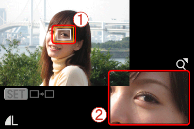 7. If more than one white frame appears, the display at the bottom right switches each time you press the ⋖FUNC./SET⋗ ().