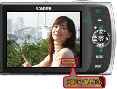 If the image appears with the date on the LCD monitor as shown above, the [Date Stamp] function was in use when shooting the image.
