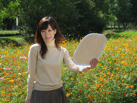 You can add brightness to the subject's face using the flash, but you can get more natural-looking shots by using a reflector plate. And, compared with pictures taken without a reflector plate, the subject's eyes seem to glitter more in pictures taken with a reflector plate. This is because the light that is reflected by the reflector plate is reflected into the sunlight. Not only can reflector plates reflect light onto the subject's face, but you can also count on them to create lively expressions.