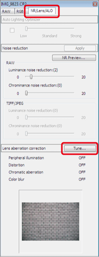 3. Select the [NR/Lens/ALO] tab and click [Tune].