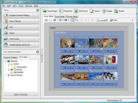 If you cannot find the [ZoomBrowser EX] shortcut icon on your desktop, click [Start]()⋗ [All Programs] or [Programs] ⋗ [Canon Utilities] ⋗ [ZoomBrowser EX] and select [ZoomBrowser EX] to start [ZoomBrowser EX].