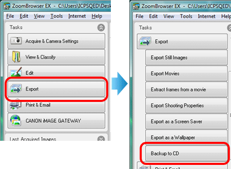 3. The dialog box below appears. Click [Export] and [Backup to CD].