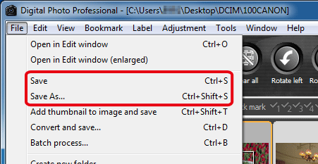 With Digital Photo Professional, you can perform the following types of saving according to your requirements.