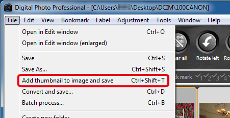 2. Select [Add thumbnail to image and save] from the [File] menu.