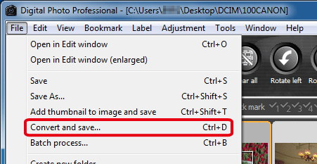 To view, edit and print a RAW image with software other than Digital Photo Professional, convert to a more versatile JPEG or TIFF image and save. The image is saved as a separate image, so the RAW image remains unaffected.