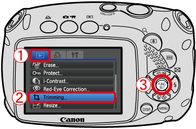 When the image you want to trim appears, press the ⋖FUNC./SET⋗ () button.