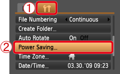 Operate the ⋖directional buttons⋗ to set the [Power Saving].