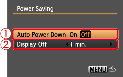 Operate the ⋖directional buttons⋗ left or right to set the [Auto Power Down] to [Off].