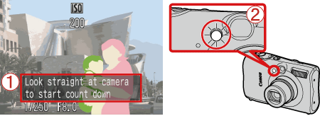 The Face Self-Timer is a function that once you compose the shot and press the ⋖shutter button⋗, the camera will take photos approximately two seconds after it detects your face.