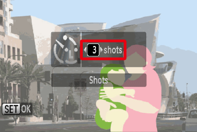 Operate the ⋖directional buttons⋗ right or left to set the number of shots.