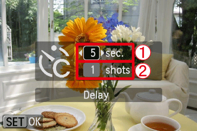 Operate the ⋖directional buttons⋗ to set the [Delay] to [5-seconds]. (Maximum 30 seconds)