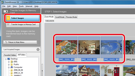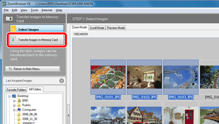 3. Click [Transfer Images to Memory Card].