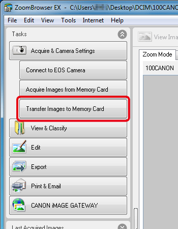 This section explains procedures on how to write images saved on a computer back to a memory card using a memory card reader with ZoomBrowser EX Ver.6.6.