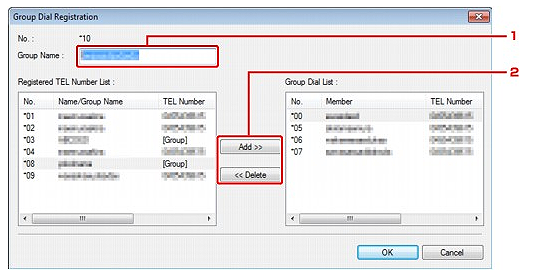 (2) Select the code you want to add to the group dial, then click Add.