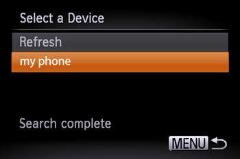 6. Choose the name of the smartphone you installed the Camera Window app on, and then press the [FUNC./SET] (