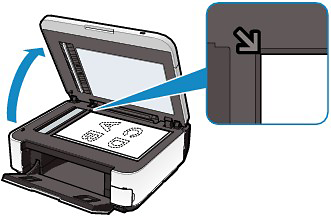To load the original on the Platen Glass, align it with the alignment mark WITH THE SIDE TO COPY FACING DOWN as shown below.