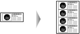 You can copy an image multiple times onto a single page. You can set the machine to automatically select the number of times it repeats the image, or you can specify the number.