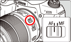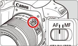 2. Set the lens’s focus mode switch to ⋖ AF ⋗.