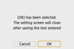 | Finishing the text entry | Press the < MENU > button to confirm what you have entered and exit. If a confirmation dialog is displayed, select [OK] to exit. |