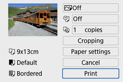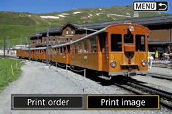 ⋗ keys of the cross keys to select an image to print, then press ⋖