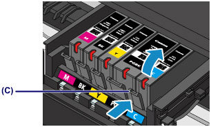 Push the tab (C) and lift the ink tank to remove.