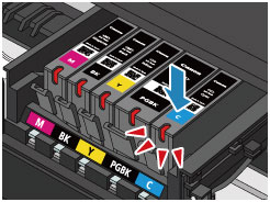 (2) Press on the top of the ink tank until the ink tank snaps firmly into place.