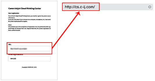 Step 1: Print the printer registration ID and URL.