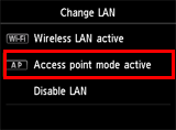 To end access point mode, select other than [ Access point mode active ].