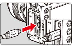 1. Connect the HDMI cable to the camera's ⋖HDMI OUT⋗ terminal.