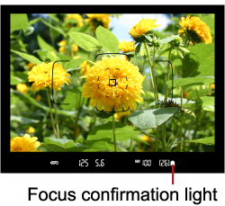 When focus is achieved, the AF point which achieved focus will be displayed, and the focus confirmation light [ ] in the viewfinder will also light.