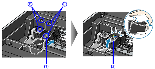 The Black FINE Cartridge should be installed into the left slot () and the Color FINE Cartridge should be into the right slot (