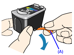 (1) Unpack a new FINE Cartridge and remove the orange protective tape (A) gently.
